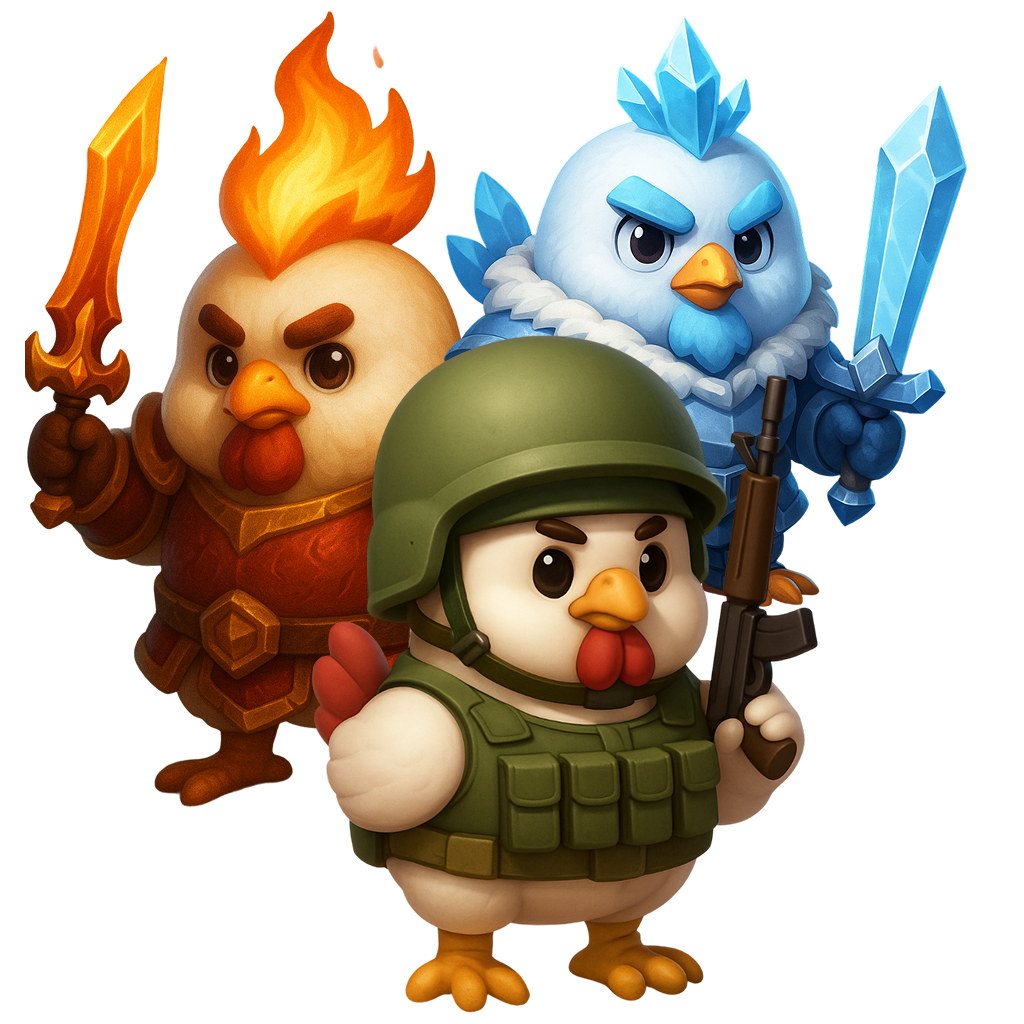 As the game progresses, the speed of the conveyor increases, and the eggs become more challenging to manage. To handle this rising difficulty, players must improve their chickens by selecting higher-level warriors with enhanced abilities.